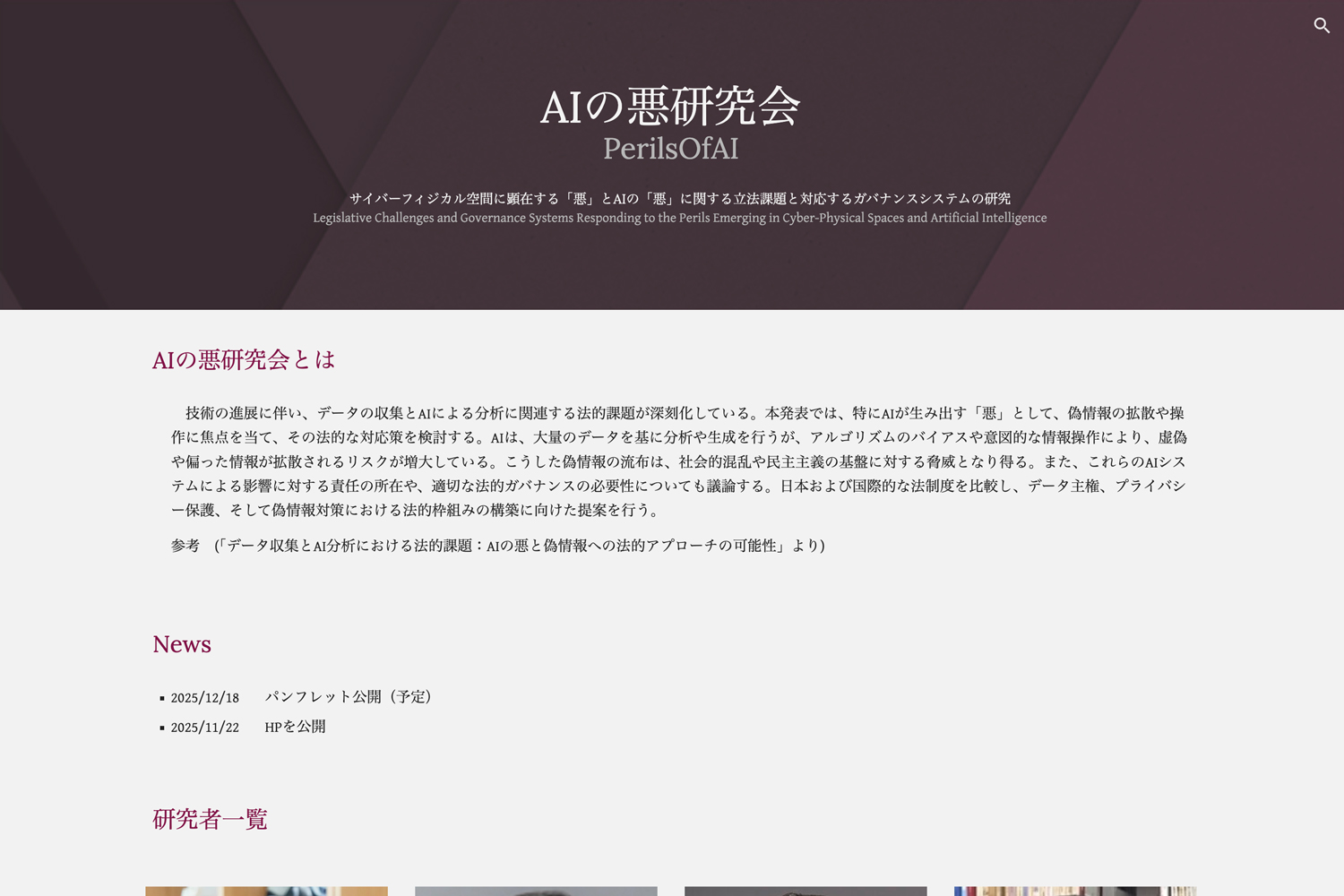 一橋大学 寺田麻佑 教授「AIの悪研究会」WEBサイト制作